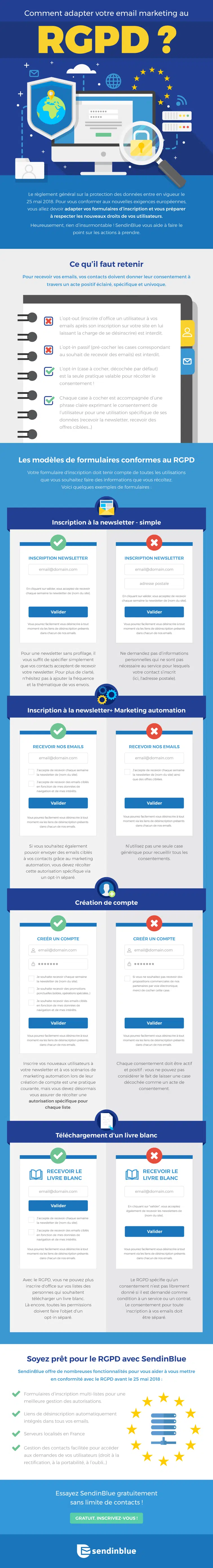 Cette infographie réalisée à l’époque par SendinBlue aborde l’un des aspects essentiels du RGPD : l’obtention du consentement lors de la récolte de données personnelles. Aujourd’hui, des solutions plus récentes comme Brevo (nouveau nom de Sendinblue) ou HubSpot sont de plus en plus adoptées pour la gestion du consentement et la conformité RGPD.
