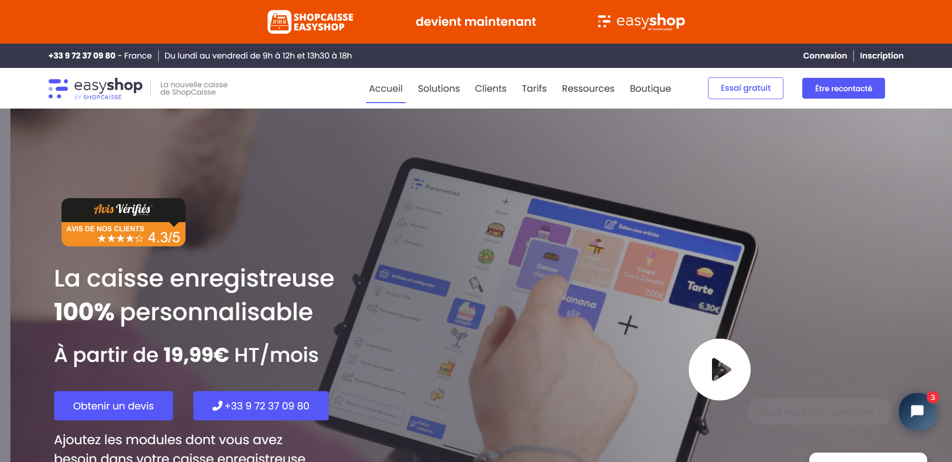 Conformité : propose une version adaptée au marché français. Vérifiez l’attestation anti‑fraude TVA. Tarifs : commission par transaction et options mensuelles pour modules.