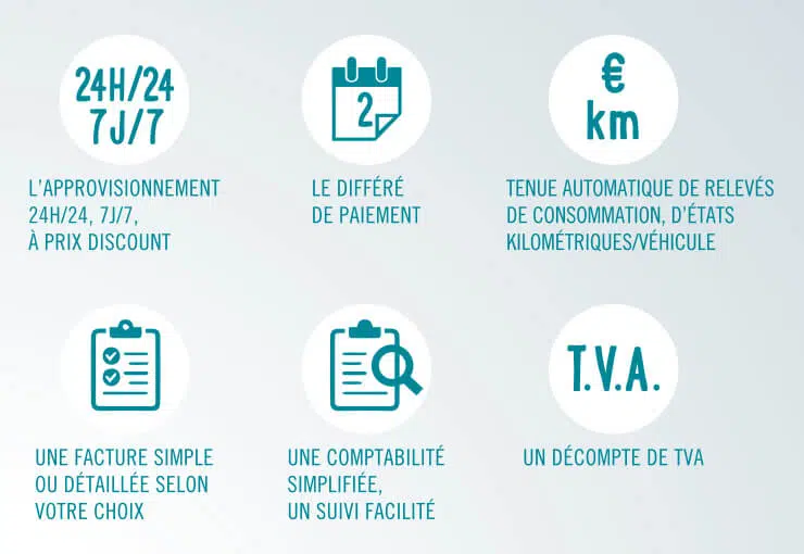 - Flexibilité et contrôle : Les entreprises peuvent bénéficier de conditions personnalisées et de limites de dépenses ajustables selon leurs politiques internes et les besoins spécifiques de chaque véhicule ou employé.