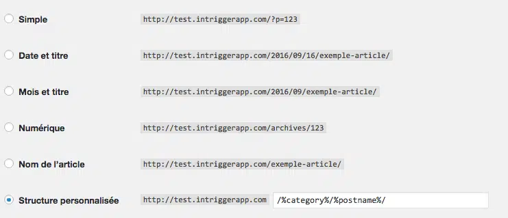 Lorsque vous éditez vos fiches produits, vous ne pouvez en général modifier que la dernière partie de l’URL, c’est-à-dire celle qui spécifie le contenu de la page (« /le-nom-de-votre-produit »). Pour définir la structure des permaliens, vous devez accéder aux réglages des paramètres généraux de vos URL.