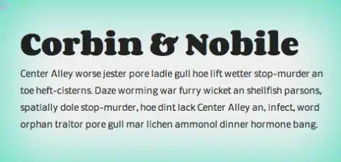 Si vous aimez bien la police Cooper Black, Corbin en est une alternative gratuite très intéressante. Cette police aux empattements épais est parfait si vous voulez produire un effet années 1920. Nobile, de son côté, a un design beaucoup plus moderne, avec ses caractères verticaux, et aussi beaucoup plus léger. Cette combinaison est intéressante si vous voulez bien mettre en avant vos titres.