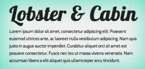 Lobster est une police assez étonnante. En général, les polices épaisses posent problème en termes de lisibilité. Là, ce n’est pas le cas. Elle est à la fois, élégante et lisible. Ces qualités sont rarement réunies. La police Cabin – simple et légère – offre un contraste intéressant avec Lobster.
