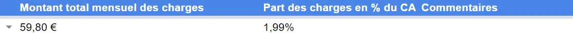 Le tableau vous indiquera, pour chacune des solutions une synthèse du coût total par mois, en euro, dans la colonne E. La colonne F indique le pourcentage de votre chiffre d’affaires que représente ce coût.