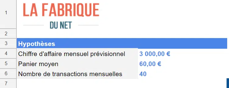 La principale motivation qui nous a conduit à produire le tableau ci-dessus est justement de vous aider à y voir plus clair dans cette jungle tarifaire et à comparer facilement les différents prestataires. Le tout en fonction de vos propres hypothèses d’activité. Lorsque vous aurez téléchargé le tableau, nous vous invitons à renseigner vos hypothèses dans les cellules B4 à B6.