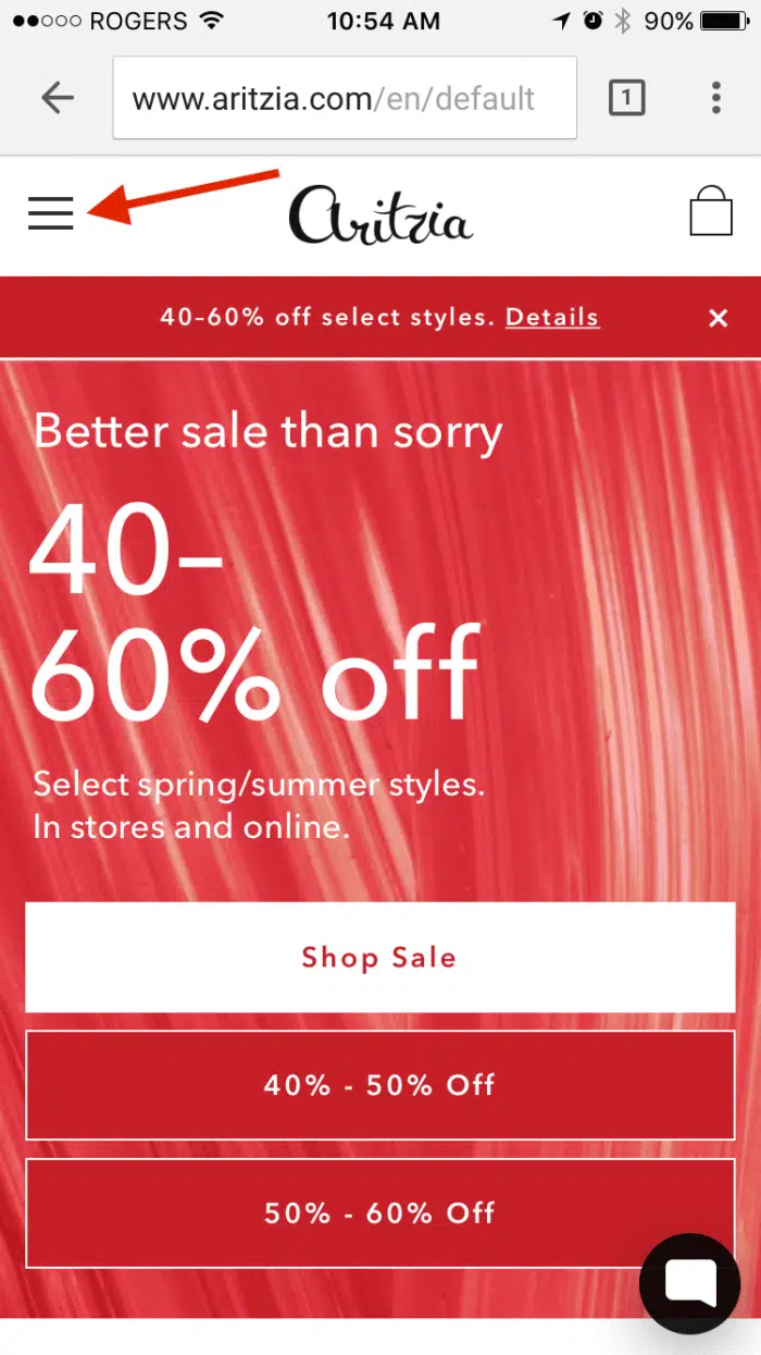 Les écrans des plus gros smartphones sont plus petits que ceux des plus petits ordinateurs. La taille de l’écran est l’une des plus grosse contraintes du mobile. Qui dit petit écran dit moins de contenu affiché. Les utilisateurs sont souvent obligés de beaucoup scroller pour accéder aux informations qui les intéressent et avancer dans leur parcours de navigation ou d’achat. Une des techniques pour remédier à cela est ce que les anglophones appellent la « persistent navigation », la navigation persistante. Cela consiste à faire en sorte que les éléments les plus importants de votre site restent en place en cas de scrolling de l’utilisateur. Typiquement, cela peut concerner le logo de votre société, le menu, le bouton d’accès au compte client, vos CTA principaux. Cette technique évite à l’utilisateur de devoir remonter en haut de la page pour cliquer sur les liens.
