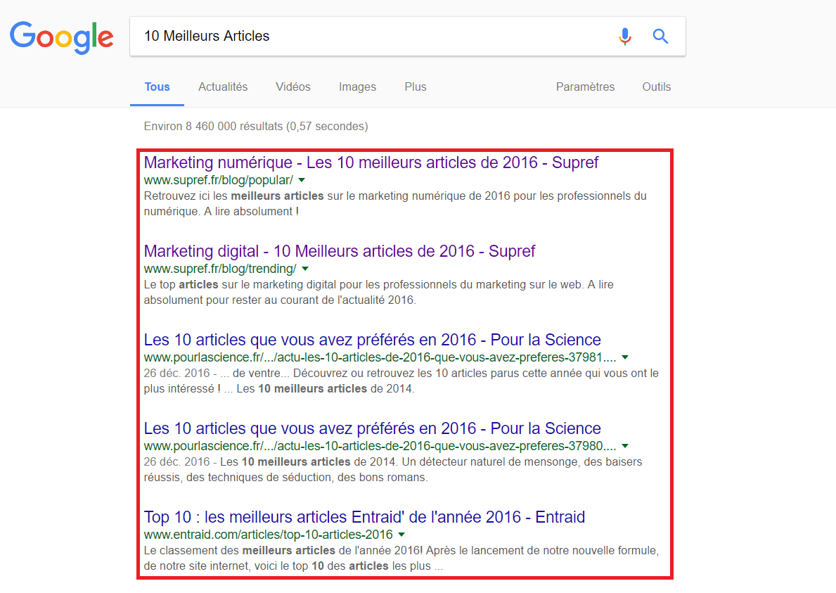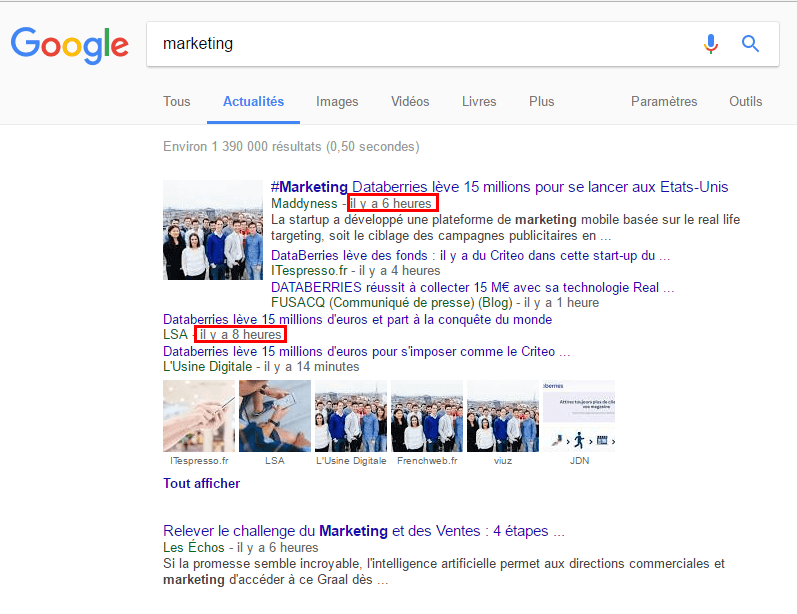 C’est une excellente méthode pour connaître les articles d’actualités tendances vis-à-vis d’un mot-clé en rapport avec votre niche.