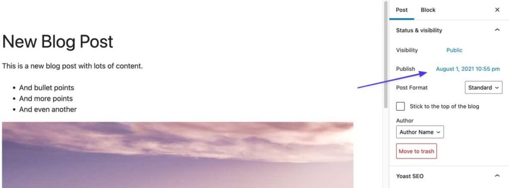 Ensuite, vous pouvez également modifier la date pour que votre article se place en haut de votre blog, et si la date publiée apparaît dans les résultats de recherche, alors l’article aura l’air recent.