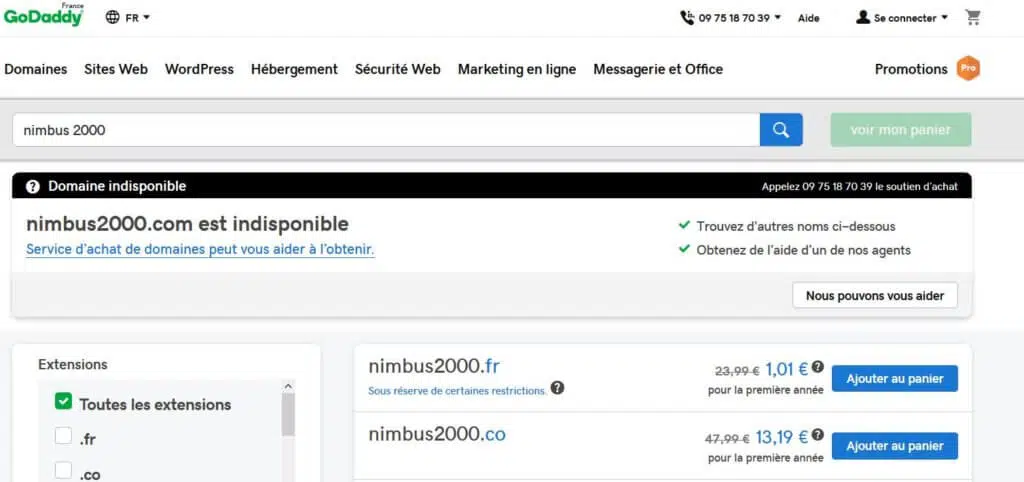 Si votre nom de blog est disponible, acheter un nom de domaine prendra 5 minutes sur des plateformes comme GoDaddy ou Namecheap. Les fournisseurs d’hébergement offrent souvent un nom de domaine gratuitement lorsque vous vous inscrivez chez eux. C’est le cas de WordPress notamment.