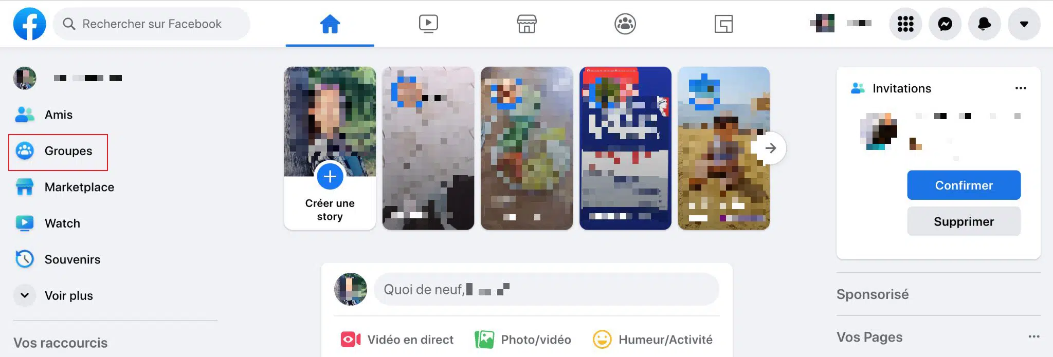 Commencez par vous rendre sur le groupe dans lequel vous souhaitez publier. Depuis votre page d’accueil, sélectionnez “Groupes” dans la barre latérale gauche.
