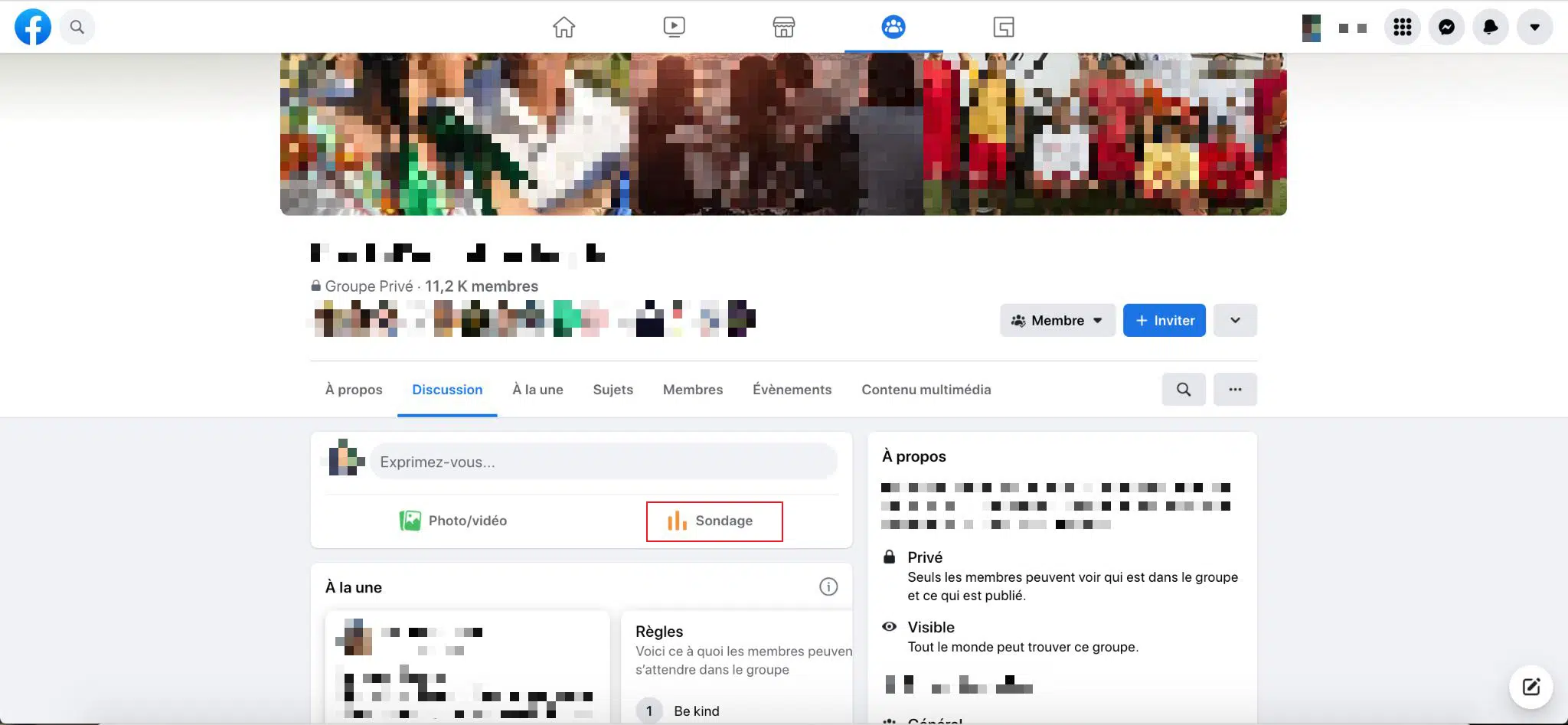Rappelons qu’il est possible de créer un sondage Facebook principalement depuis un groupe. La création de sondages sur les pages n’est plus proposée en natif par Facebook. Dans cet exemple, nous allons publier sur un groupe.