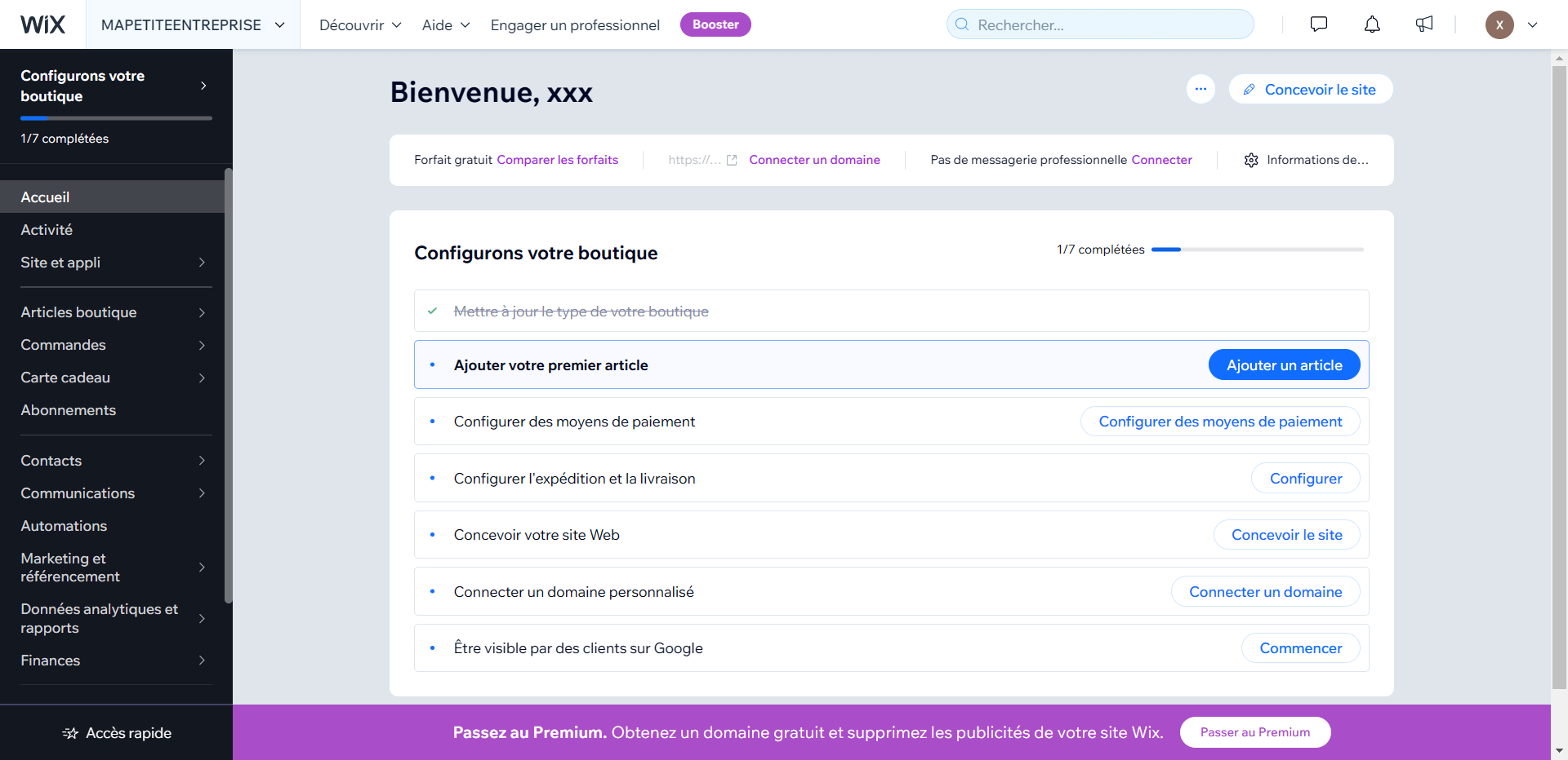Mais attention au “gratuit” affiché : dans 100 % des cas, vous devrez passer à une formule payante pour activer la vente en ligne.