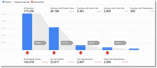Les rapports proposés par Google Analytics dans le menu « commerce électronique » (et les rapports personnalisés qu l’on peut construire à partir d’eux) sont une mine d’or de données pour mieux comprendre le comportement de vos potentiels clients.