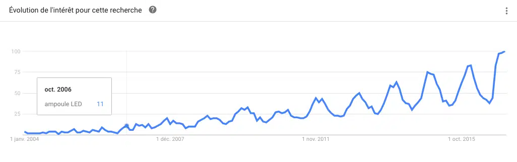 Les ampoules à diode électroluminescente (LED), autrefois réservées pour la fabrication de voyants, sont de plus en plus utilisées pour l’éclairage domestique en raison de leur faible consommation électrique et à leur longue durée de vie (et malgré leur prix plus élevé). Dans une époque marquée par la montée des préoccupations environnementales, ce produit devient de plus en plus populaire. Cette tendance positive n’est pas prête…de s’éteindre. On observe également le développement de marchés liés à la domotique et à l’éclairage connecté (ampoules LED intelligentes, pilotables via smartphone ou assistants vocaux).