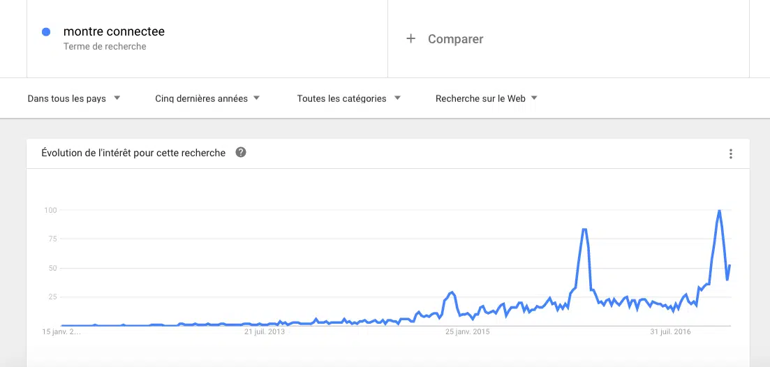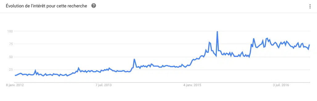 La manière la plus simple et la plus rapide pour vérifier les tendances produits consiste à utiliser l’outil Google Trends. Cet outil est gratuit et permet, pour une requête donnée (et donc pour un produit donné), de voir l’évolution de sa popularité à travers le temps. Vous pouvez analyser l’évolution depuis 2004. A noter que vous pouvez étudier la popularité d’un produit d’un pays à l’autre, voire d’une ville à l’autre.