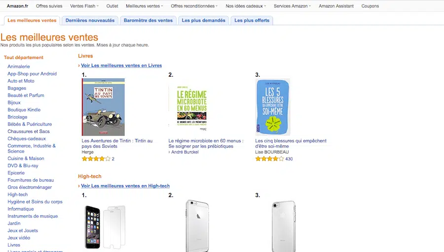 Découvrir les meilleures ventes sur Amazon, catégorie par catégorie (et sous-catégorie par sous-catégorie) :