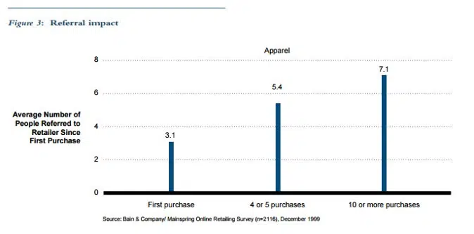 Les études montrent aussi que les clients fidèles ont tendance à dépenser plus d’argent (panier moyen plus élevé), à acheter plus souvent et à parler de votre marque à plus de personnes. La fidélité client augmente le « referral »et donc le bouche-à-oreille.
