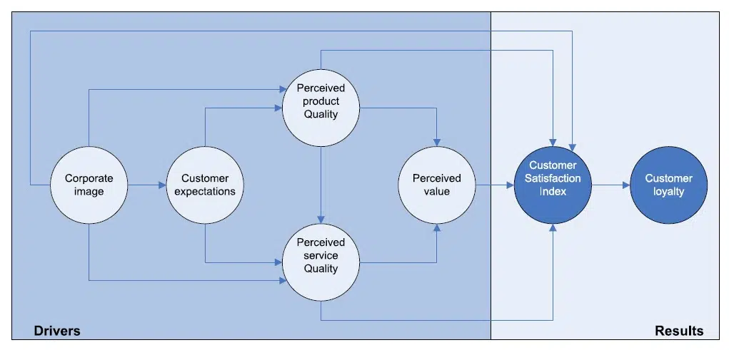 Plusieurs modèles ont été développés pour essayer de comprendre le comportement de fidélité client. Celui-ci par exemple, proposé par The European Customer Satisfaction Index :