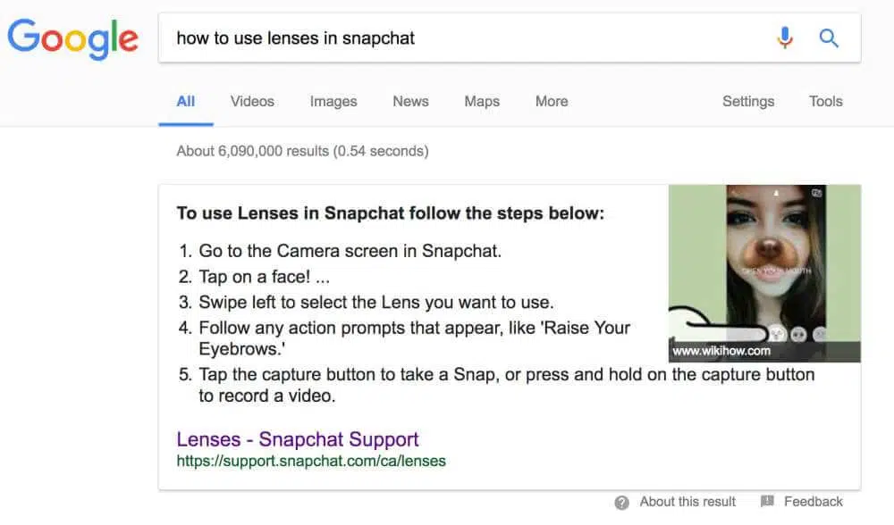 Supposons que vous souhaitiez rechercher du contenu Web qui vous apprendra à utiliser les fonctionnalités d’une application populaire. En fonction de votre requête de recherche, vous avez plus de chances d’obtenir un type de liste de featured snippet :