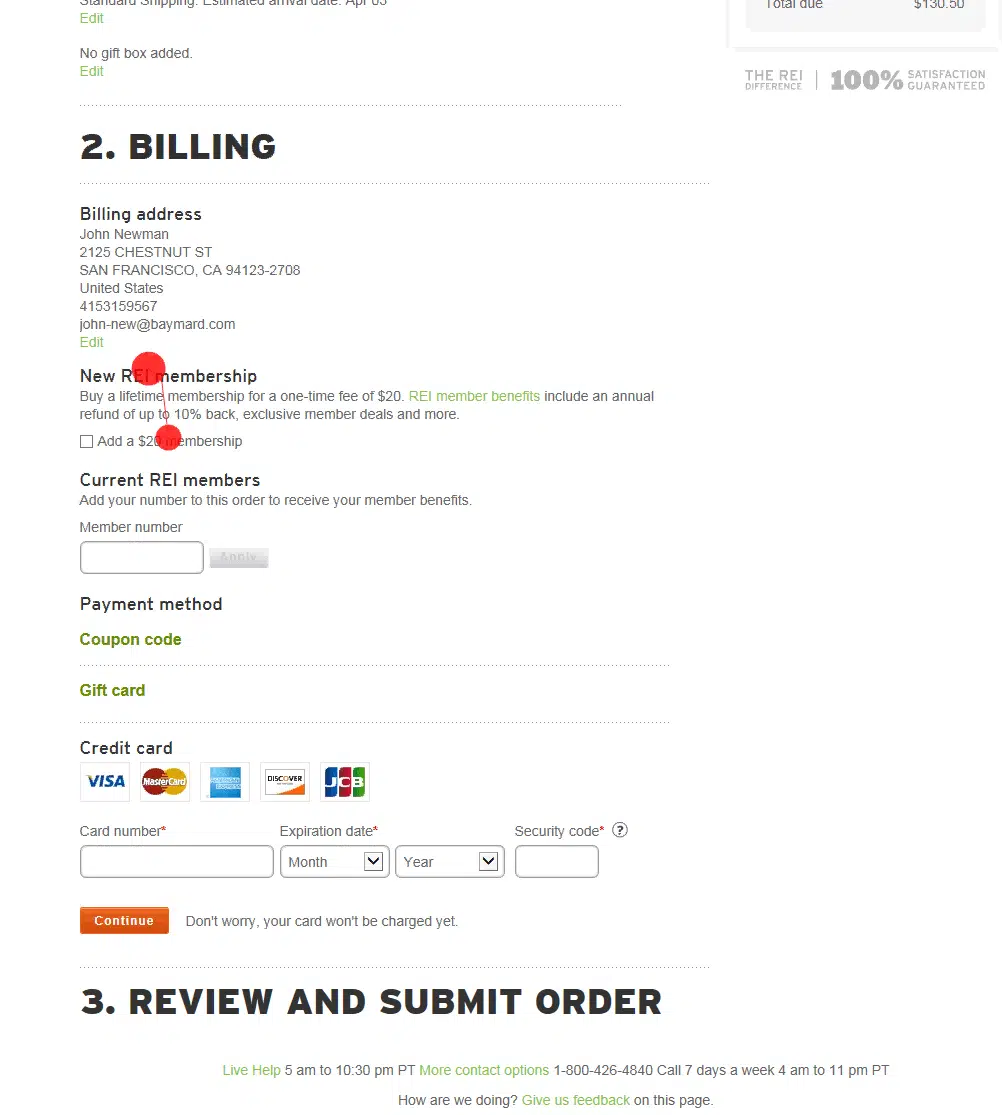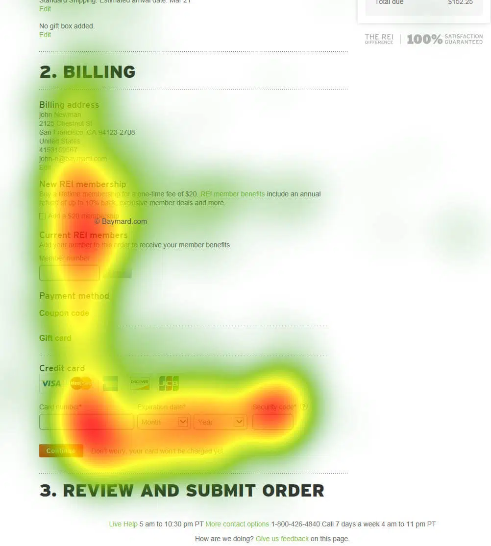 Notez comment les sujets ont porté une grande partie de leur attention autour de la « Nouvelle adhésion REI » et « Membres REI actuels », par rapport aux champs de carte de crédit juste à coté.