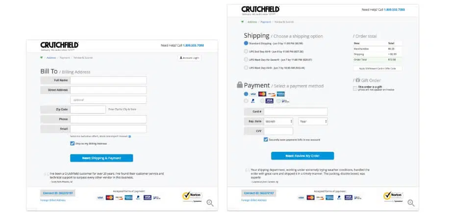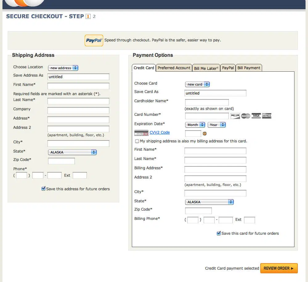 Pour 14% des sites de commerce électronique grand public, le choix par défaut est d’utiliser différentes adresses d’expédition et de facturation. Cela se traduit par un nombre élevé de champs de formulaires présentés sur la page qui intimident inutilement l’utilisateur.