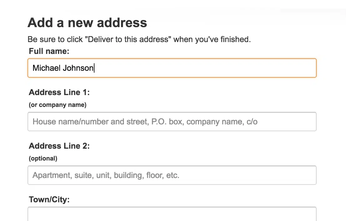 Un deuxième avantage d’un seul champ « Nom complet » est qu’il est incroyablement flexible quand il s’agit de titres et de second prénom / nom, car les utilisateurs peuvent en inclure autant qu’ils veulent. Comparez cela à un site qui demande « Prénom » et « Nom de famille » – où êtes-vous censé entrer votre deuxième prénom, votre titre ? Bien sûr, le site pourrait inclure des champs facultatifs pour ces options, mais cela signifierait un total de 4 champs de formulaire juste pour remplir un nom. Ce qui nous amène au troisième avantage d’avoir un seul champ « Nom complet »: il réduit le nombre total de champs de formulaire. Pour un flux de paiement moyen avec 15 champs, un seul champ « Nom complet » correspond à une réduction de 7% par rapport aux champs séparés « Prénom » et « Nom » – et beaucoup plus si le site demande un second prénom, initiales, et / ou titre. Notez que toutes les fonctions de simplification de formulaire ne sont pas « 100% gratuites ». Certaines amènent à l’obtention de moins de données des utilisateurs. Parfois, vous obtenez les mêmes données mais dans un format moins structuré. Un seul champ « Nom complet » est un cas parfait – vous vous retrouvez avec les mêmes informations client, mais dans un format moins structuré. Le principal inconvénient de ceci est de perdre la capacité de s’adresser précisément à chaque utilisateur par son prénom ou son nom (il existe des scripts automatisés qui peuvent diviser un « nom complet » en ses différents composants, mais ils ne sont pas précis à 100%).