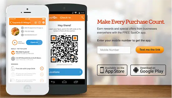 Cela s’applique chaque fois que vous demandez quelque chose à des utilisateurs en ligne – formulaires de contact, inscriptions par e-mail, paiement – plus vous demandez à vos visiteurs, moins vous pouvez vous attendre à ce que votre taux de conversion soit élevé. Les exemples que nous avons vus plus tôt – Bank of America et surtout BT UK – demandent sans doute un peu trop de leurs utilisateurs. Bank of America demande aux clients de compléter un processus en trois étapes. BT demande à ses clients de faire le travail en les textant. Il existe des moyens de simplifier davantage le processus. Tous ce que les clients doivent faire pour obtenir l’application SpotOn est d’entrer leur numéro de téléphone et cliquez sur « Envoyez-moi un message texte ».