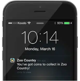 Les notifications push sont des messages qui apparaissent sur les appareils de vos utilisateurs lorsque votre application est fermée. Ils comportent des messages conçus pour inciter les utilisateurs à revenir dans l’application, et ils ressemblent à ceci :
