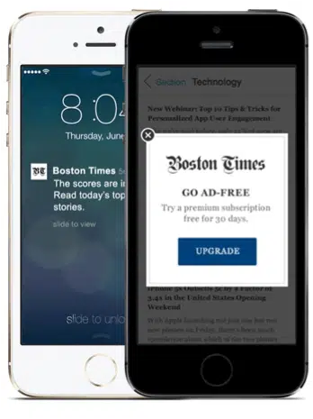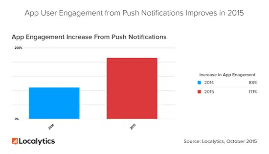Les notifications push peuvent significativement augmenter l’engagement sur l’application. Si vous n’utilisez pas les notifications push vous manquez probablement une énorme quantité de trafic répété. Cela dit, il est important de les utiliser avec soin. Les notifications push trop intrusives peuvent entraîner des désinstallations.