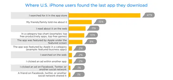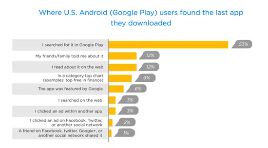Traditionnellement, une part importante des consommateurs recherche et trouve des applications directement dans les stores d’applications, mais les comportements d’acquisition d’applications ont évolué avec l’essor du web mobile, des moteurs de recherche et des recommandations sociales.