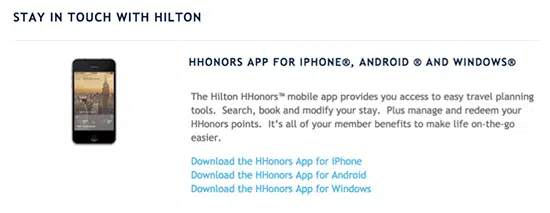Le Hilton, pour sa part, reste simple avec une série de liens texte :