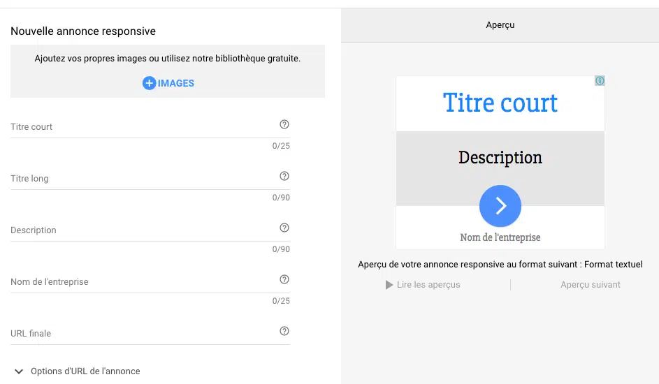 • Assurez-vous de sélectionner une taille standard de bannière (par exemple 300×250, 728×90, 160×600, ou formats adaptés au mobile comme 320×100) pour garantir la compatibilité sur tous les supports, y compris mobiles.