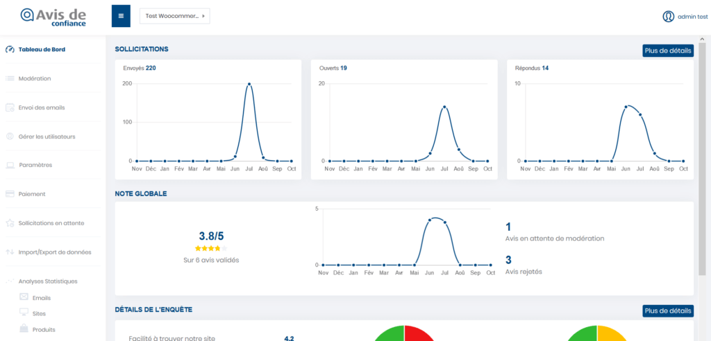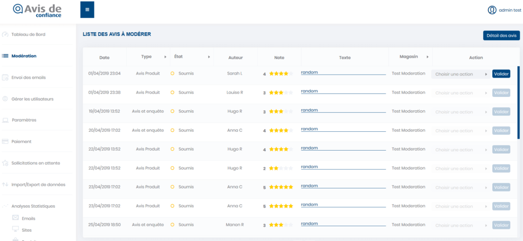 - Gestion centralisée des avis (modération, publication, analyse).