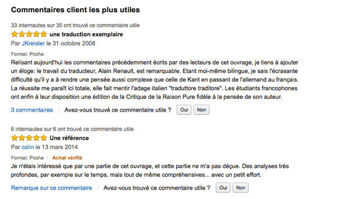 Par définition, les clients qui postent des avis n’ont rien à défendre, n’ont pas d’intérêt à vanter les mérites d’un produit. On ne peut pas les soupçonner de partialité marketing. Leur avis est par définition plus objectif que celui du vendeur. C’est vrai que sur certains sites on peut parfois douter de l’identité des personnes qui laissent des avis. C’est une autre histoire (à ce propos : évitez les faux avis, ils sont rapidement repérés…). Toutes les études publiées à ce jour démontrent l’importance capitale des avis-clients dans la décision d’achat des visiteurs. Les sites qui ont implémenté un module d’avis-clients ont en moyenne, toute chose égale par ailleurs, des taux d’ajout panier plus importants que les autres. La majorité des consommateurs sur internet consulte les avis-clients avant de se décider à passer à l’acte d’achat. L’impact des avis-clients sur le taux de transformation n’est plus à prouver.