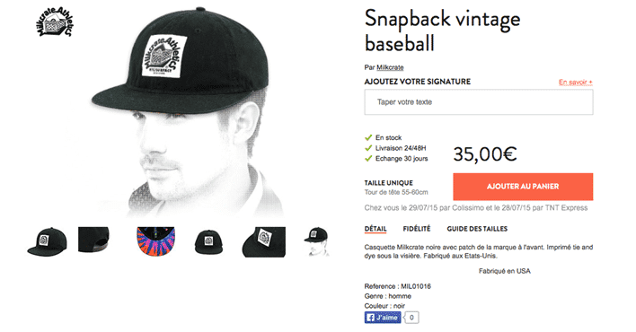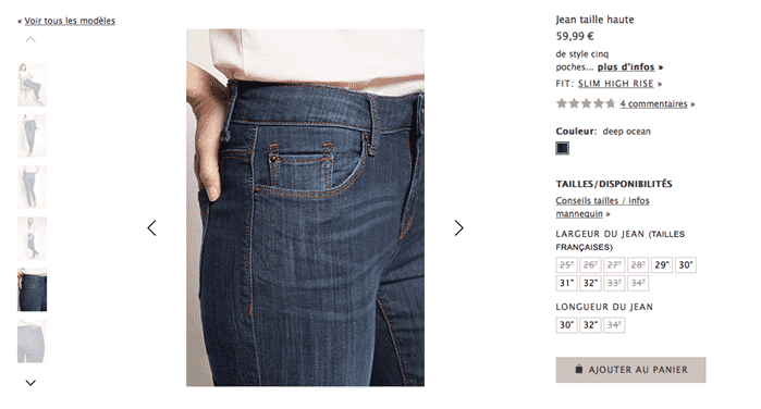 - Utilisez des grands formats pour accroître la visibilité du produit. Votre visiteur pourra voir l’image immédiatement et n’aura pas à imaginer les contours et les détails. Les détails, la texture de votre produit (pour les vêtements surtout) doivent être « palpables ».