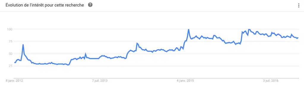 La manière la plus simple et la plus rapide pour vérifier les tendances produits consiste à utiliser l’outil Google Trends. Cet outil est gratuit et permet, pour une requête donnée (et donc pour un produit donné), de voir l’évolution de sa popularité à travers le temps. Vous pouvez analyser l’évolution depuis 2004. A noter que vous pouvez étudier la popularité d’un produit d’un pays à l’autre, voire d’une ville à l’autre.