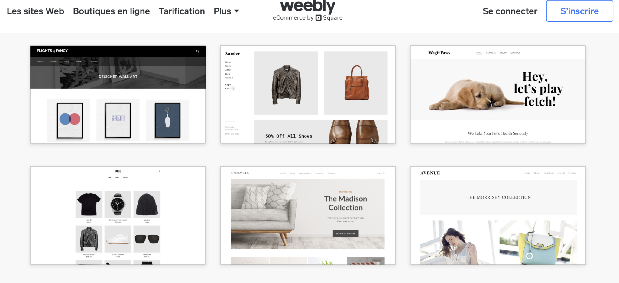- Weebly est peut-être moins connu, mais permet de créer une boutique en ligne élégante, simplement. Weebly a une version gratuite, mais forcément limitée. Vous pouvez commencer à vendre à partir de 14 € par mois. Notez que malgré une interface de création intuitive et la possibilité d’ajouter vos produits simplement sur Weebly, la solution possède quelques lourdes lacunes : mauvaises performances SEO (temps de chargement long, notamment), gestion des commandes complexe, une version gratuite très basique.