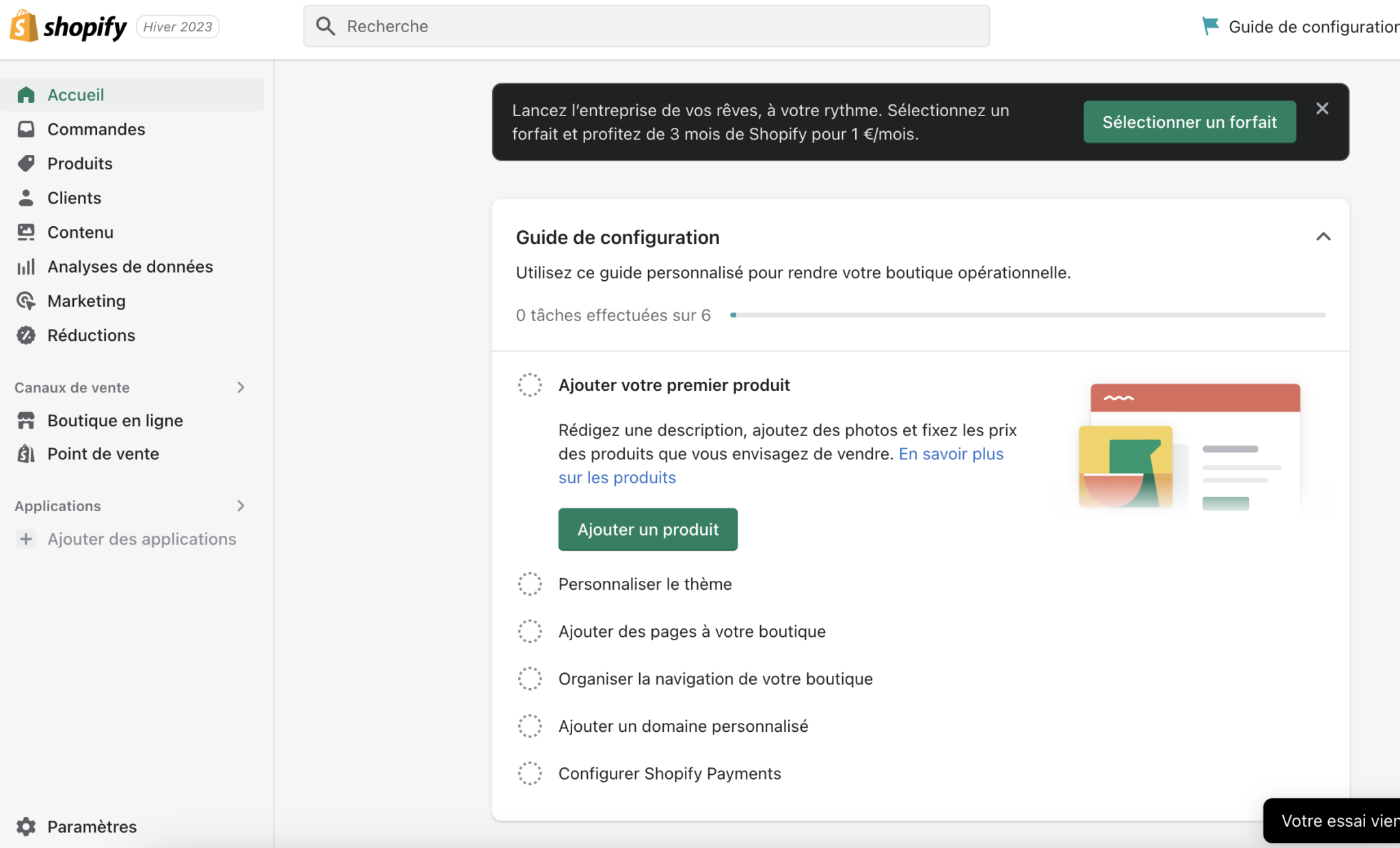 Par contre, Shopify ne propose pas de version gratuite à vie