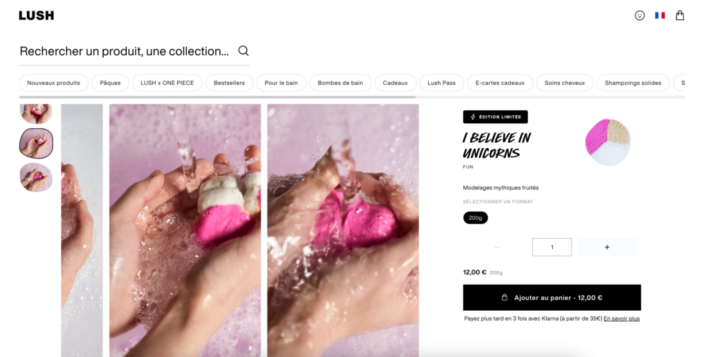 La marque de produits d’hygiène et de beauté Lush est reconnue pour ses valeurs écologiques, ses produits non testés sur les animaux et ses boutiques colorés, fun et dont l’odeur nous envoûte. Mais au-delà des très beaux points de vente de la marque, le site e-commerce de Lush est tout aussi bien pensé.