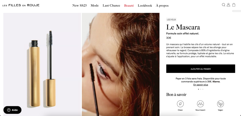 La marque de produits de beauté et de maquillage clean dispose de nombreux points de vente à Paris mais aussi d’un site e-commerce féminin, raffiné et surtout très bien pensé ! Les visuels présents sur les fiches produits sont très complets : zoom, packshot et vidéos du produit : le tout dans un univers très doux, à l’image de la marque.