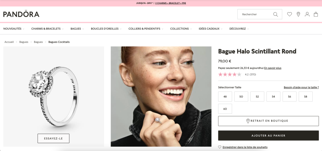 La marque de bijoux fantaisie danoise, principalement connue pour ses bijoux personnalisables avec des charm’s propose une large gamme de bijoux, pour tous les styles et tous les prix. Son site internet permet de voir les produits portés à la fois par divers mannequins, mais aussi par les consommatrices de la marque dans la rubrique dédiée : « comment les autres le personnalise ».