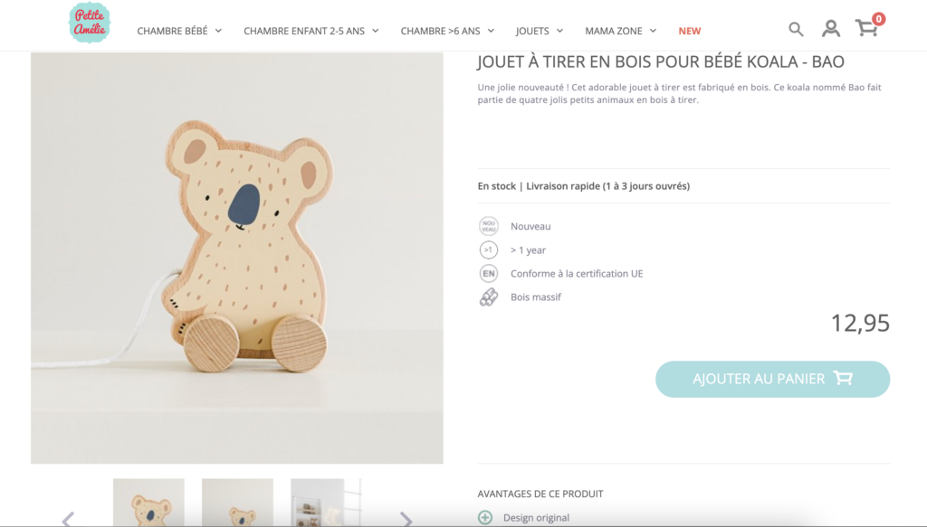 - La part belle laissée aux visuels du produit (packshot et mise en situation).