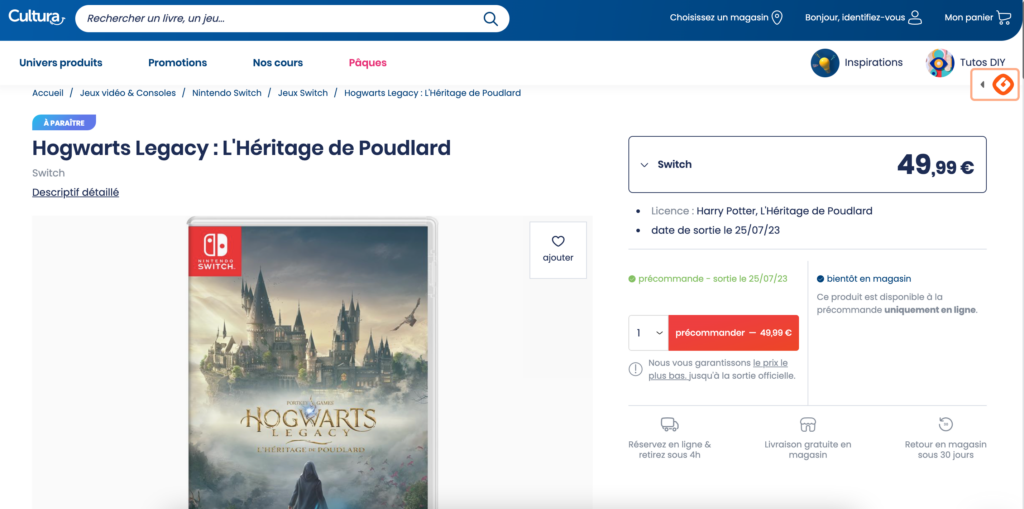 Les fans d’Harry Potter seront servis avec cet exemple de fiche produit qui reprend de nombreux visuels du jeu dont la sortie est prévue prochainement sur la console ainsi qu’une vidéo live avec des experts Cultura présentant le jeu, son univers et les fonctionnalités présentent dans l’Héritage de Poudlard.