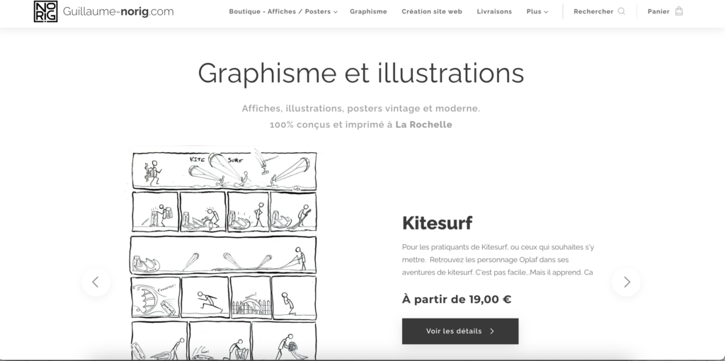 Le site Artmeta a été construit grâce à l’outil Jimdo. Comme vous pouvez le voir, la qualité est une nouvelle fois au rendez-vous. Lorsque vous arrivez sur le site, vous serez tout de suite emporté par les magnifiques photos défilantes qui laissent ensuite place à une vidéo captivante. Tout le reste fonctionne très bien en termes de navigation. Les produits sont magnifiquement présentés grâce à un jeu de couleurs parfaitement exécuté. Une quantité de texte qui est loin d’être excessive et qui laisse place aux photos qui valent le détour. Ces exemples vous ont montré que créer un site web de qualité avec 0€ est possible.
