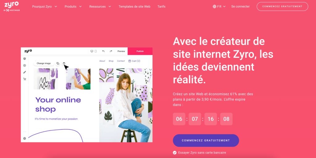 Actuellement, l’une des meilleures offres du marché pour créer un site web à 0€ est Wix. Avec des centaines de templates et d’excellents outils de personnalisation, Wix vous permet de construire un site web gratuitement et qui sera à l’image de votre entreprise. Convivial pour les débutants et évolutif, Wix convient à tous les types de sites, du portfolio personnel au site web d’une petite entreprise. Évidemment, si vous aviez prévu de créer un site e-commerce avec des milliers de références, un site Internet gratuit ne suffira pas.