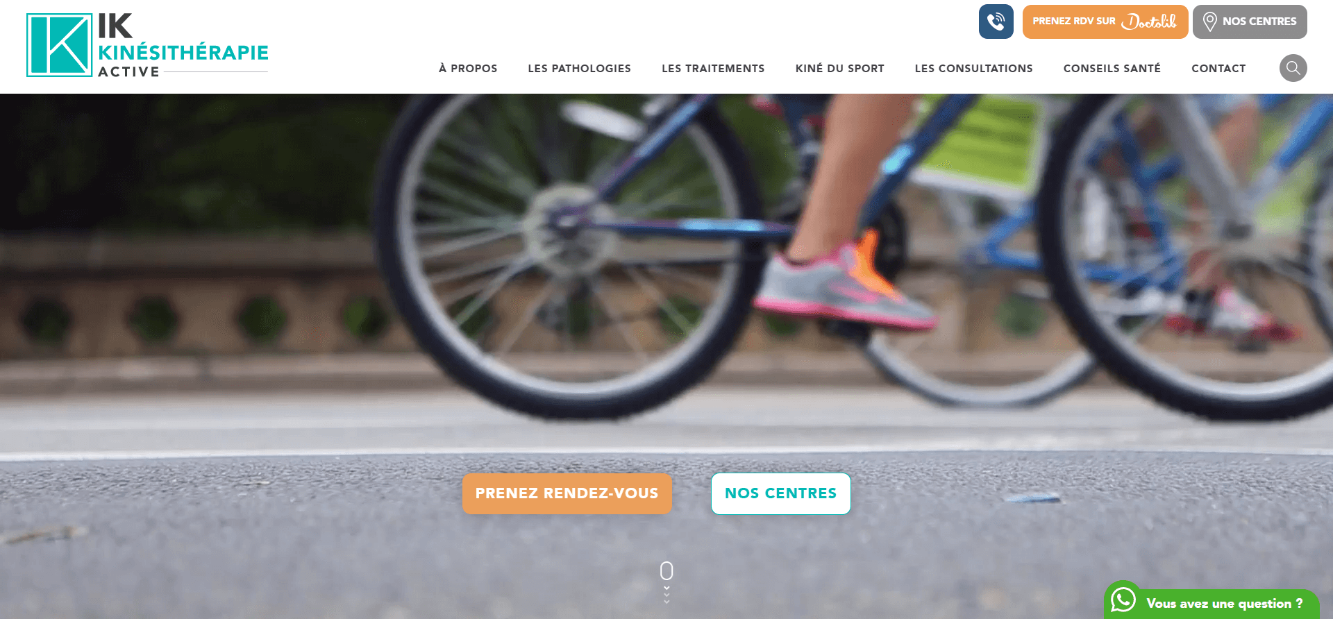 Cet institut de kinésithérapie comporte toutes les informations attendues par les patients. Il présente en détail les pathologies prises en charge, et les traitements proposés. Il est également doté d’un bouton pour vous orienter vers Doctolib pour prendre rendez-vous, et d’un autre bouton pour obtenir les numéros de téléphone des cabinets qui composent cet institut. Pour finir, les informations d’accès sont elles aussi bien détaillées, afin de se rendre facilement au cabinet le plus proche.