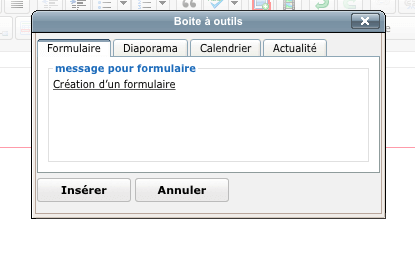 De plus, le back office offre la possibilité, via la boîte à outils, d’ajouter des modules intéressants et en toute simplicité comme un calendrier, un diaporama ou un formulaire. Ce qui peut être bien utile, comparé à des logiciels où l’ajout d’un formulaire par exemple est plus compliquée que de créer le site.