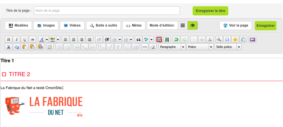 Sur l’éditeur de pages, on retrouve toutes les fonctionnalités classiques proposées par un logiciel de création de site web : ajout d’images, vidéos, éditeur WYSIWYG, etc.