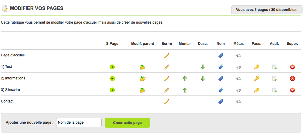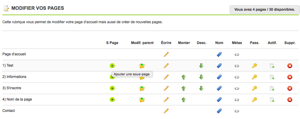 La modification de l’arborescence des pages est assez simple. Il suffit d’aller sur le tableau de bord, et d’ajouter une sous-catégorie ou une page. On peut descendre ou monter les pages, de façon à personnaliser son menu très facilement. Cependant, on ne peut pas modifier l’emplacement des sliders sur les pages. Le menu est en effet automatiquement ajouté en haut de page.