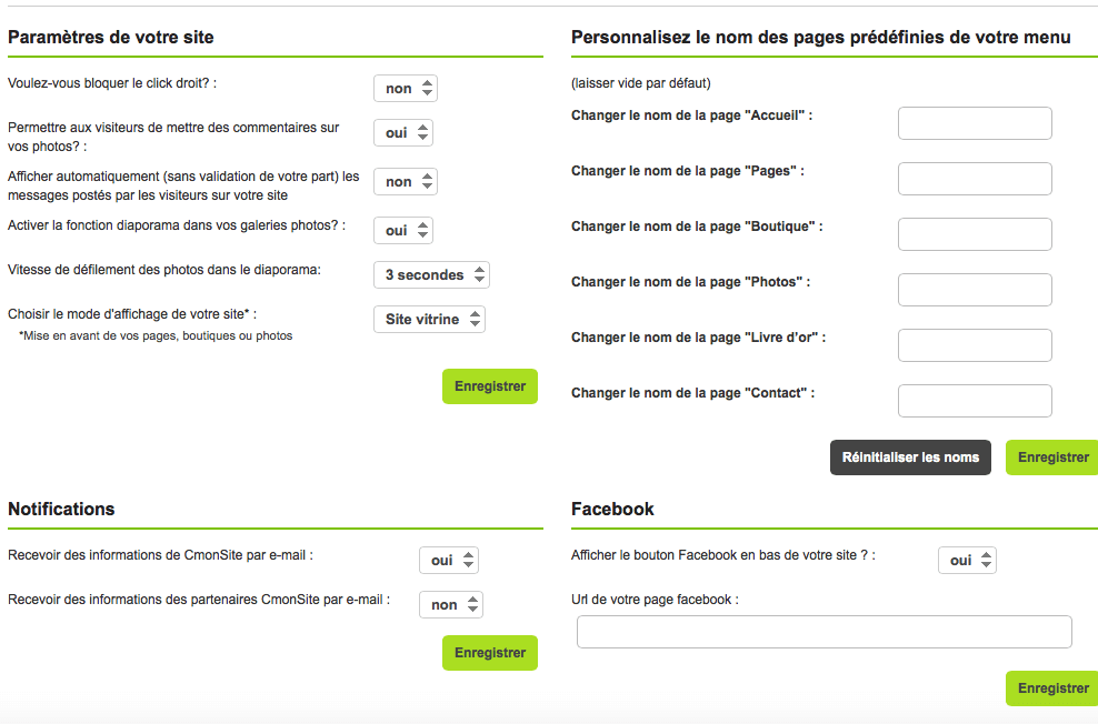 Pour les autres offres, Cmonsite propose trois niveaux de paramétrage SEO différents : « Les Bases », « La mise en avant », et « sur-mesure » pour l’abonnement le plus onéreux. Les différences ne sont pas clairement explicitées sur le site, difficile de savoir ce qui est proposée derrière ces trois offres…