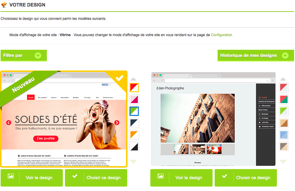 Là où CmonSite se démarque des autres back offices traditionnels, c’est par la possibilité de sélectionner des modèles pré-définis, un réel avantage quand on manque d’inspiration et/ou qu’on veut aller vite. On choisit un modèle, il suffit ensuite de modifier le texte et d’ajouter la/les image(s) que l’on souhaite.